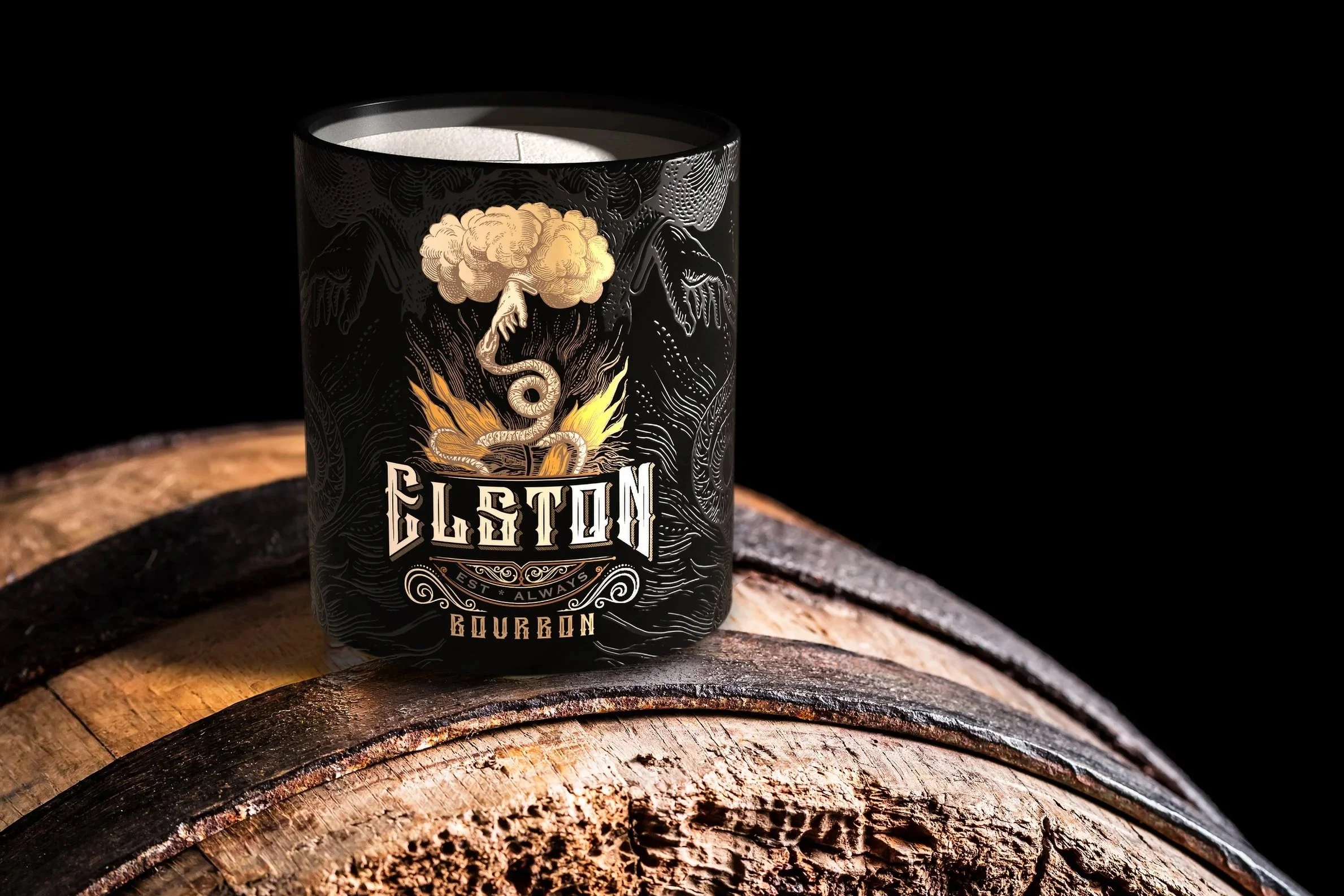 Custom Corporate Candles - Whiskey brand small batch custom candle, wax colors and scent. Perfect for a whiskey brand promotion, campaign tie-in and custom designed packaged candle gifting program.